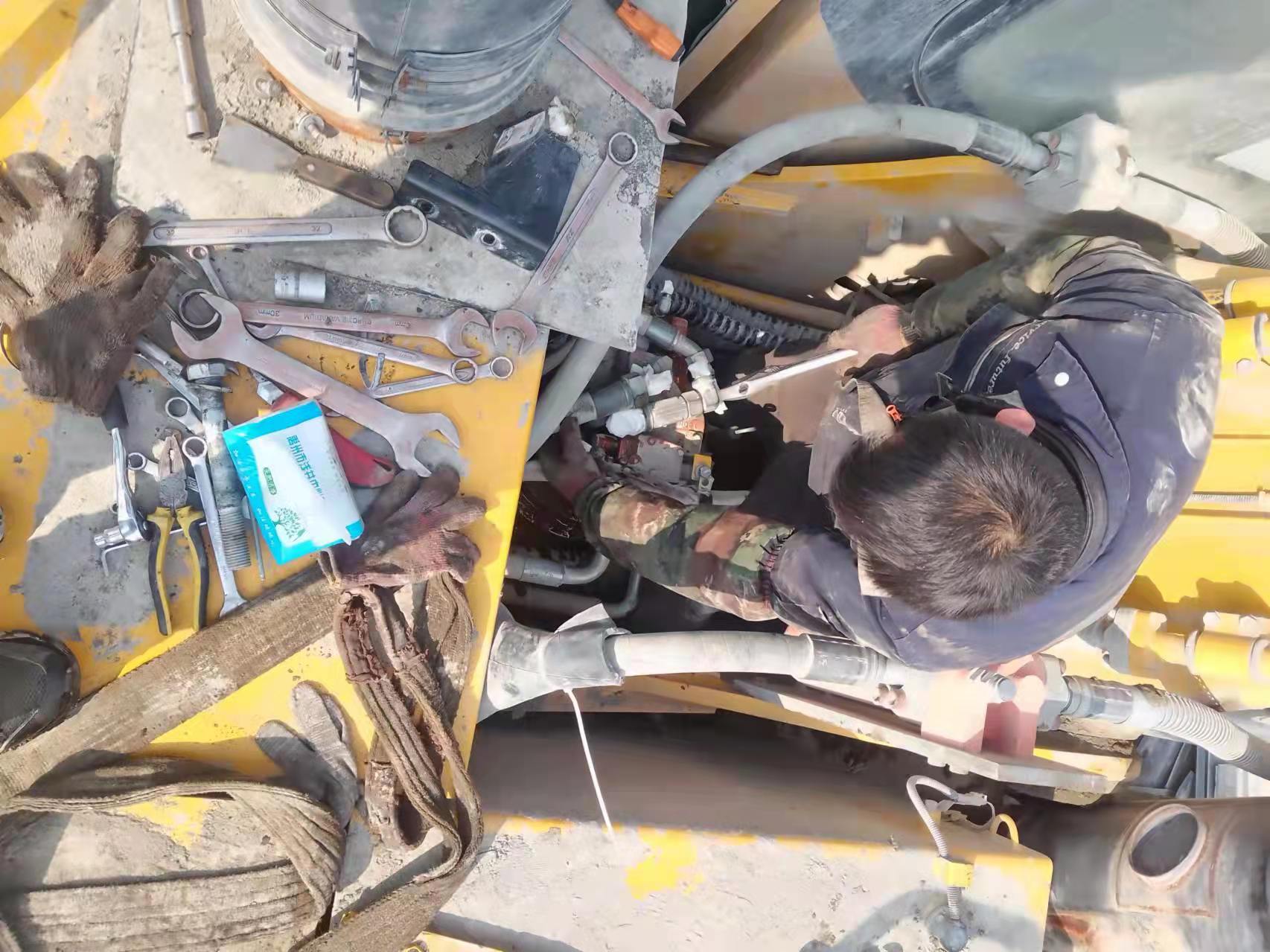 柳工939挖機拆發動機回轉馬達、中心接頭